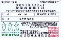 チェーンソー・刈払機の安全講習の修了証を発行発行します。